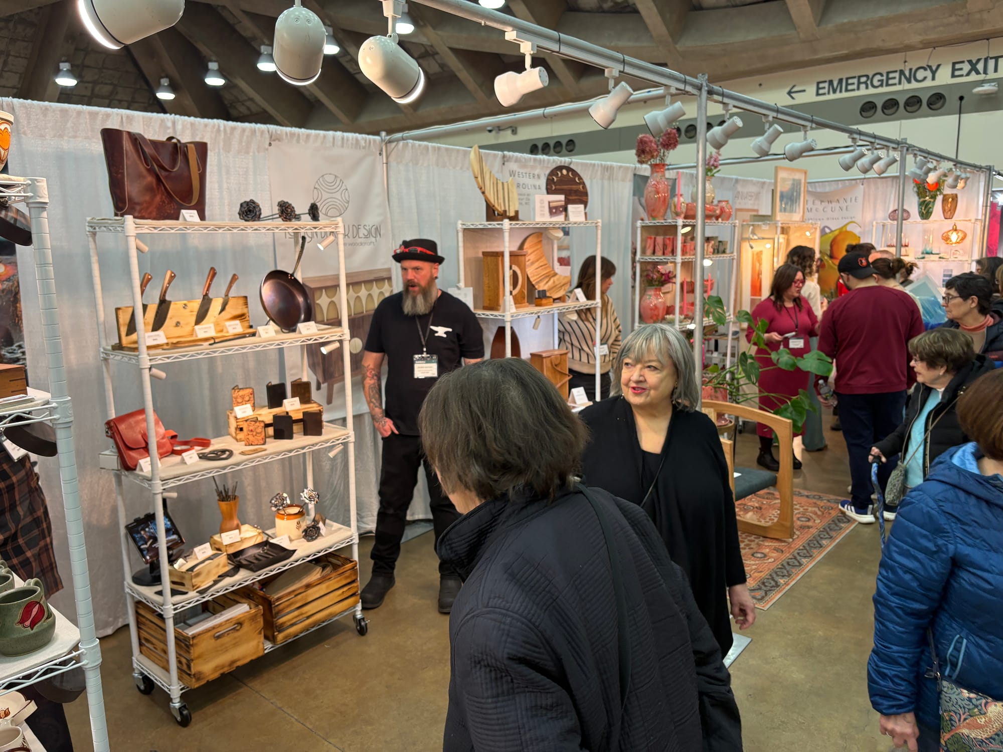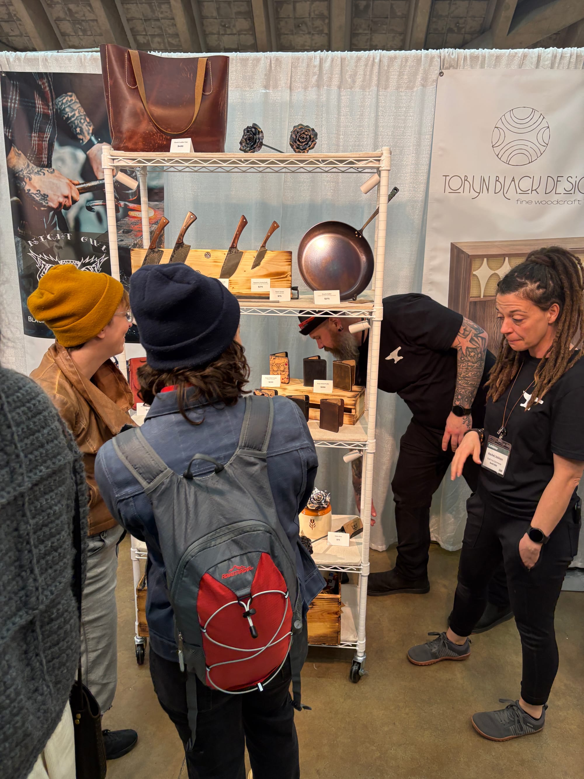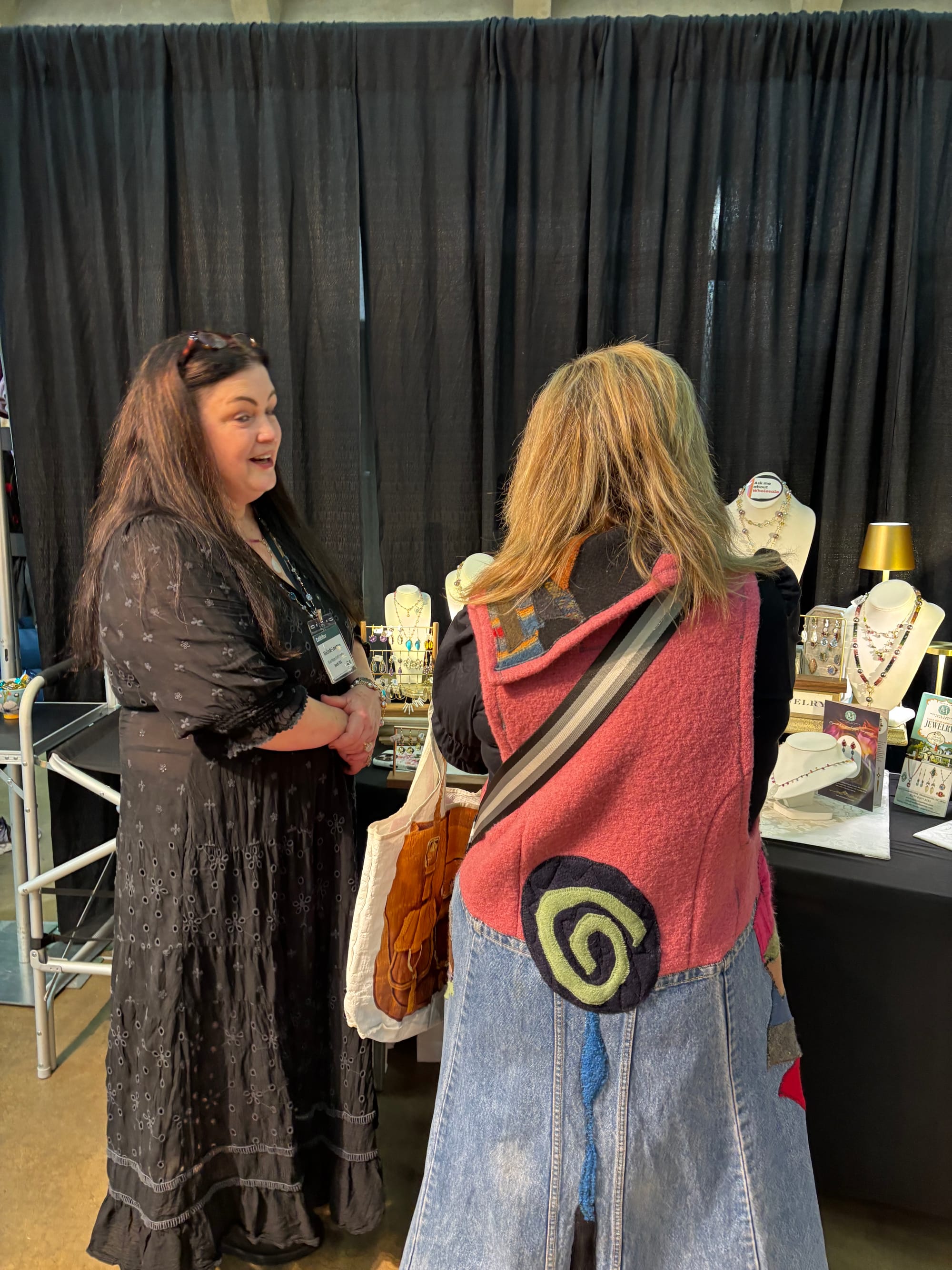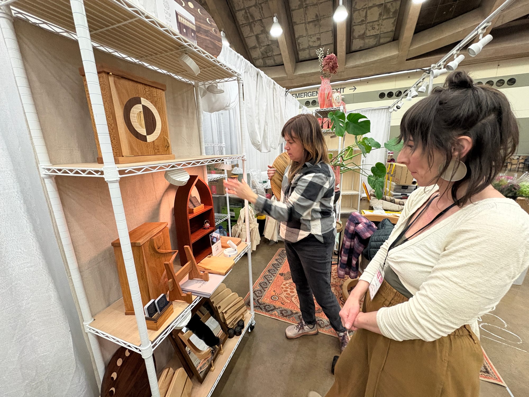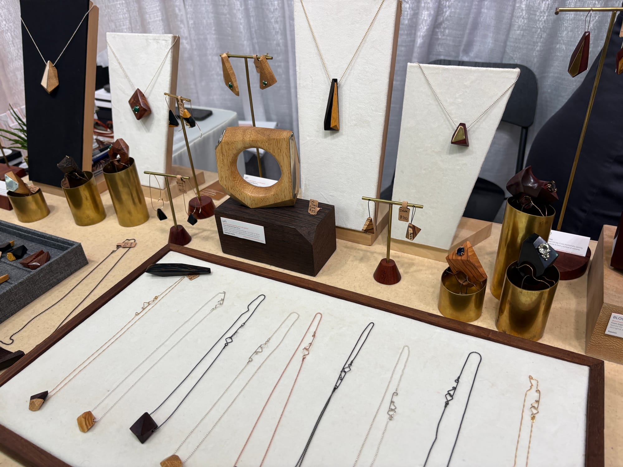 Summer Merritt, previously featured in our Weaverville travelogue, showcased her new 800 Series jewelry: wearable sculptures carved from wood, each a burst of color and shape. For her, this first show was less about the spotlight and more about joining a community of makers, swapping stories and inspiration across the tables.