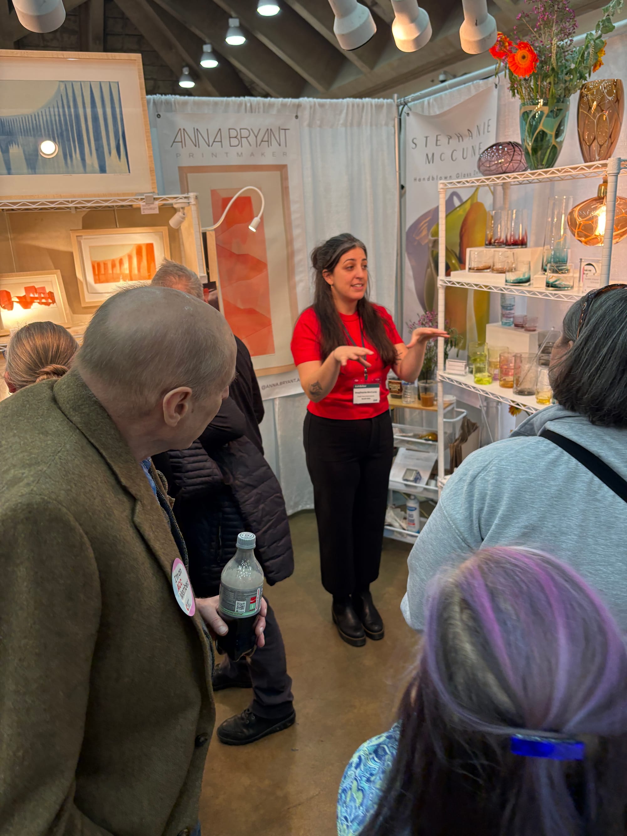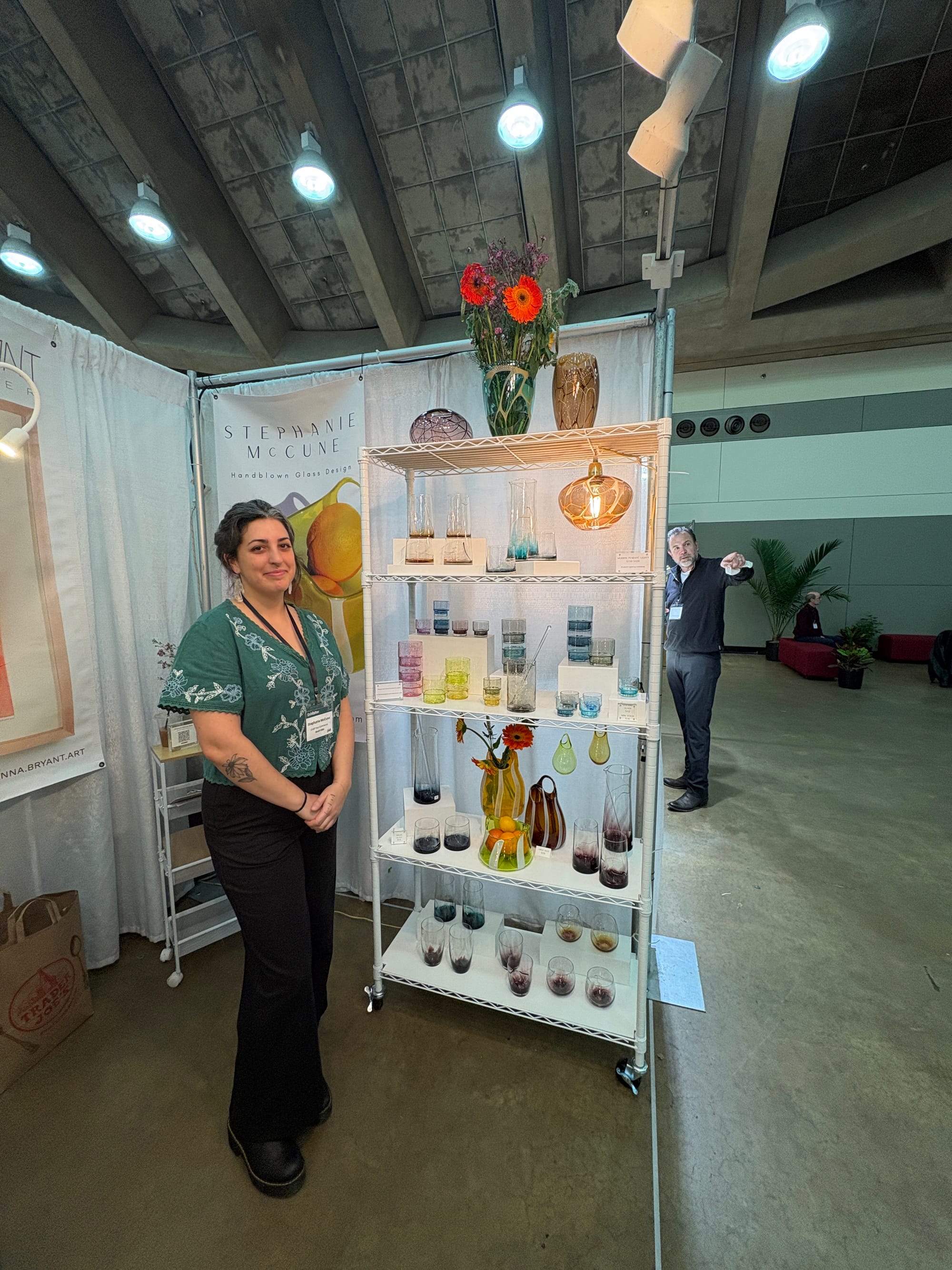 Stephanie McCune’s table glimmered with handblown glass in ocean blue and sunset purple hues. For her, Craft Made Baltimore marks a first: the leap into a large-scale show, surrounded by the hum of fellow makers. “I am so honored to be a part of this cohort,” she says, “and so excited to experience my first large-scale craft show.”