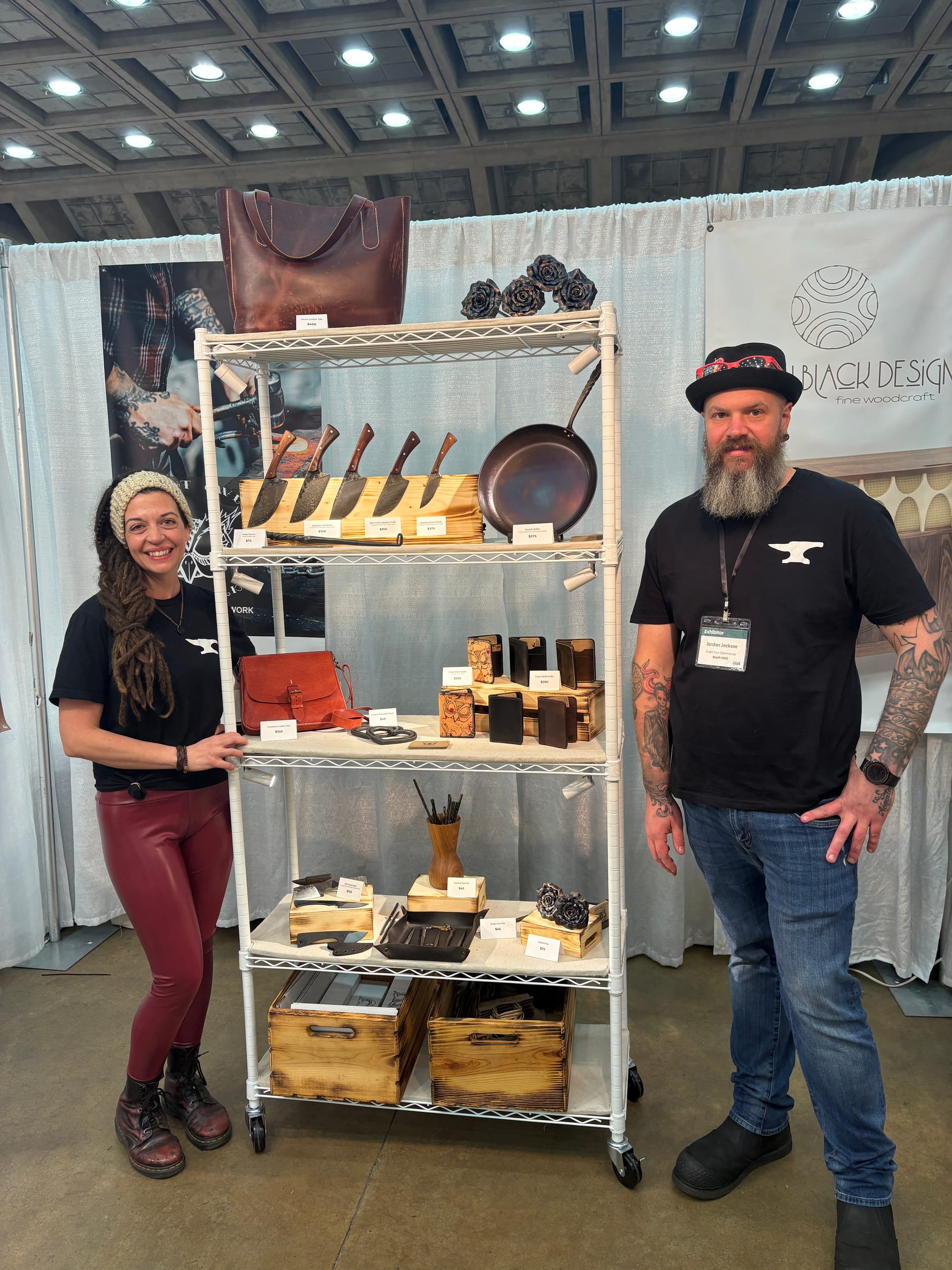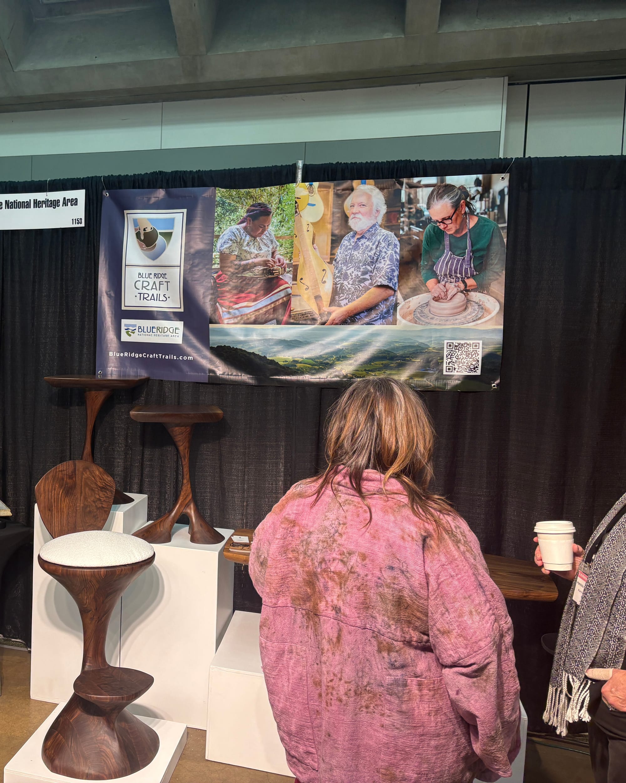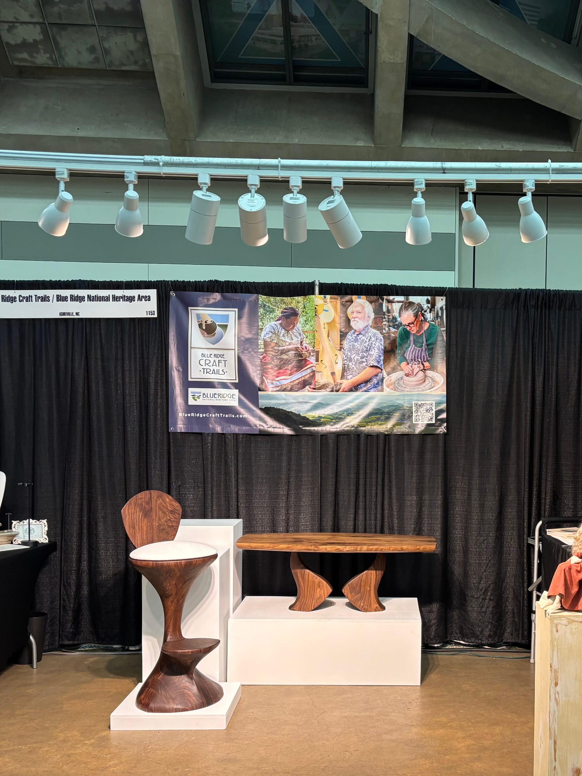 Woodworker Toryn Davis Black brought months of meticulous work to Craft Made Baltimore, showcasing mid-century modern furniture and homeware. Committed to sustainability, Toryn uses local Appalachian hardwoods alongside ethically sourced international woods. “I am deeply honored and honestly still a little stunned to be part of this,” she says, proud to exhibit alongside fellow WNC artists.