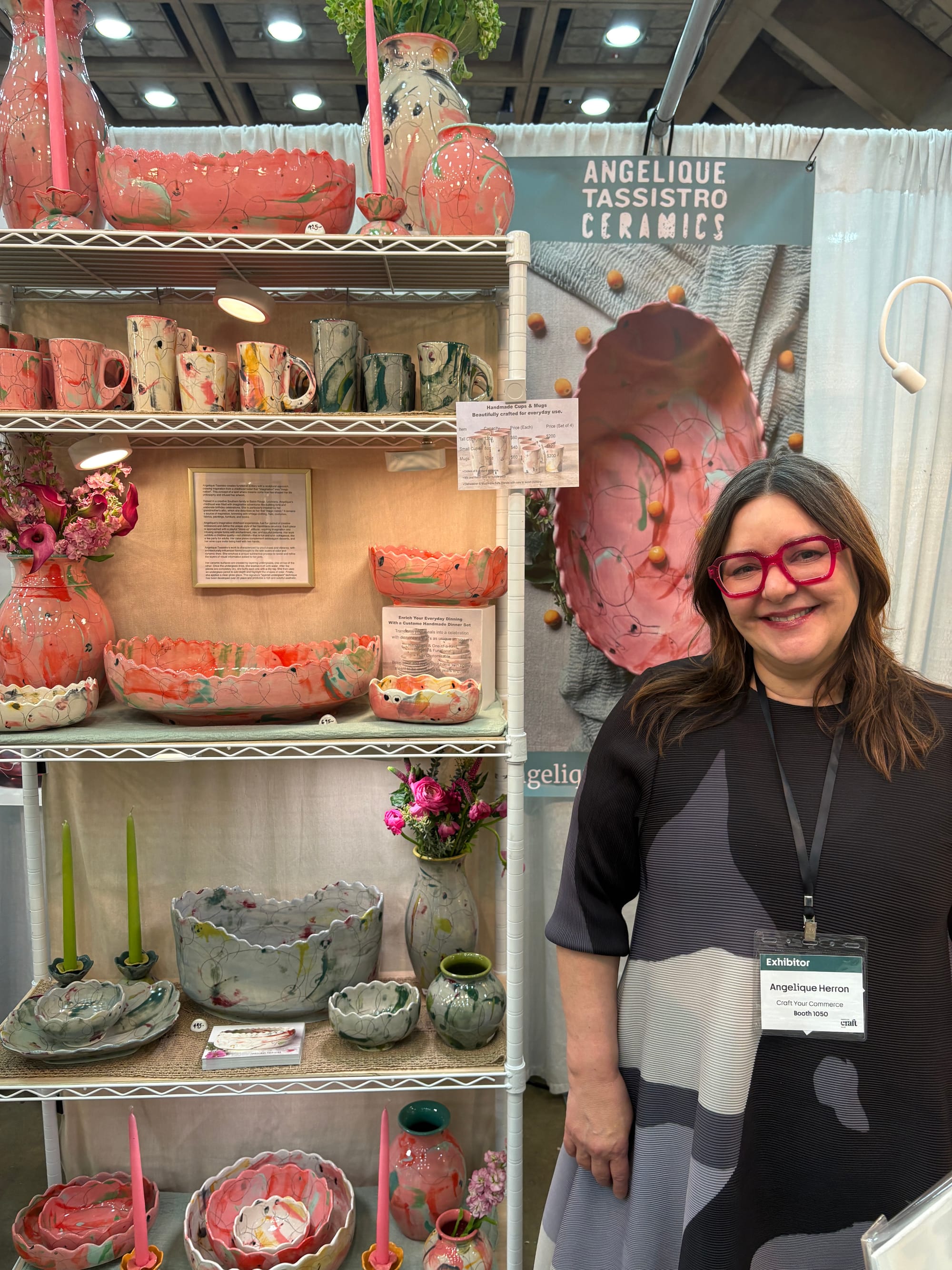 Angelique Tassitro’s playful ceramics made a splash at Craft Made Baltimore, where she debuted a new collection and soaked in the show’s “electric” energy. “Getting to this point has been a dream and a mountain of hard work,” she says. “But seeing this new collection under the lights makes it all worth it. The level of craft in this building is absolutely amazing.”