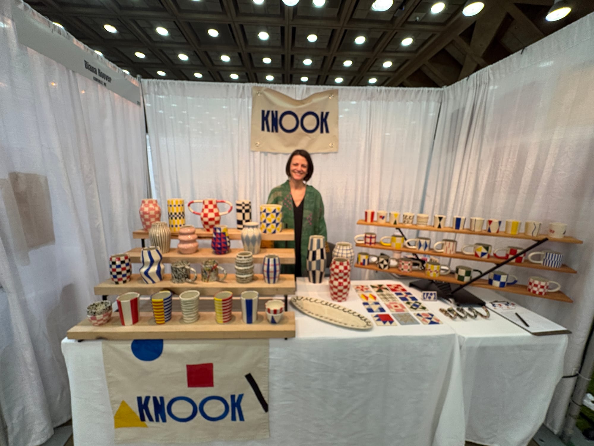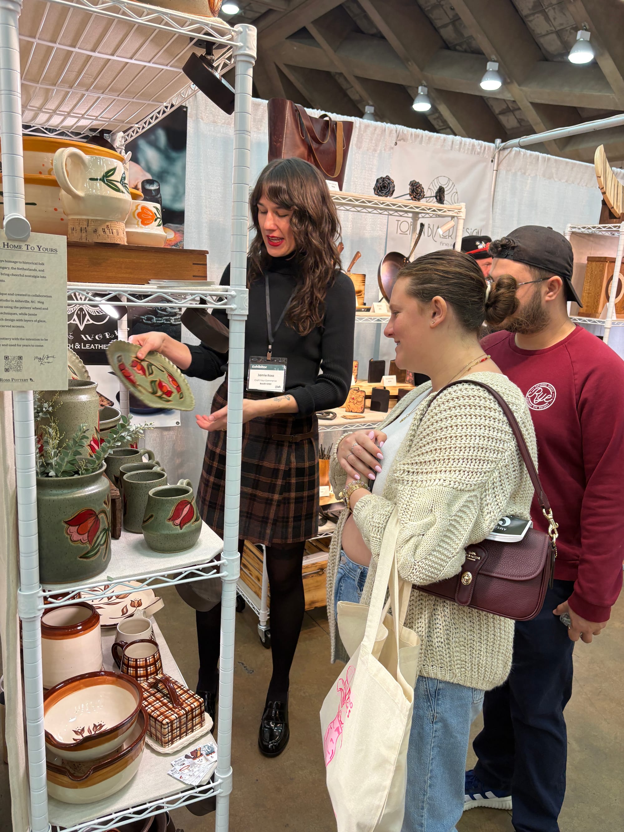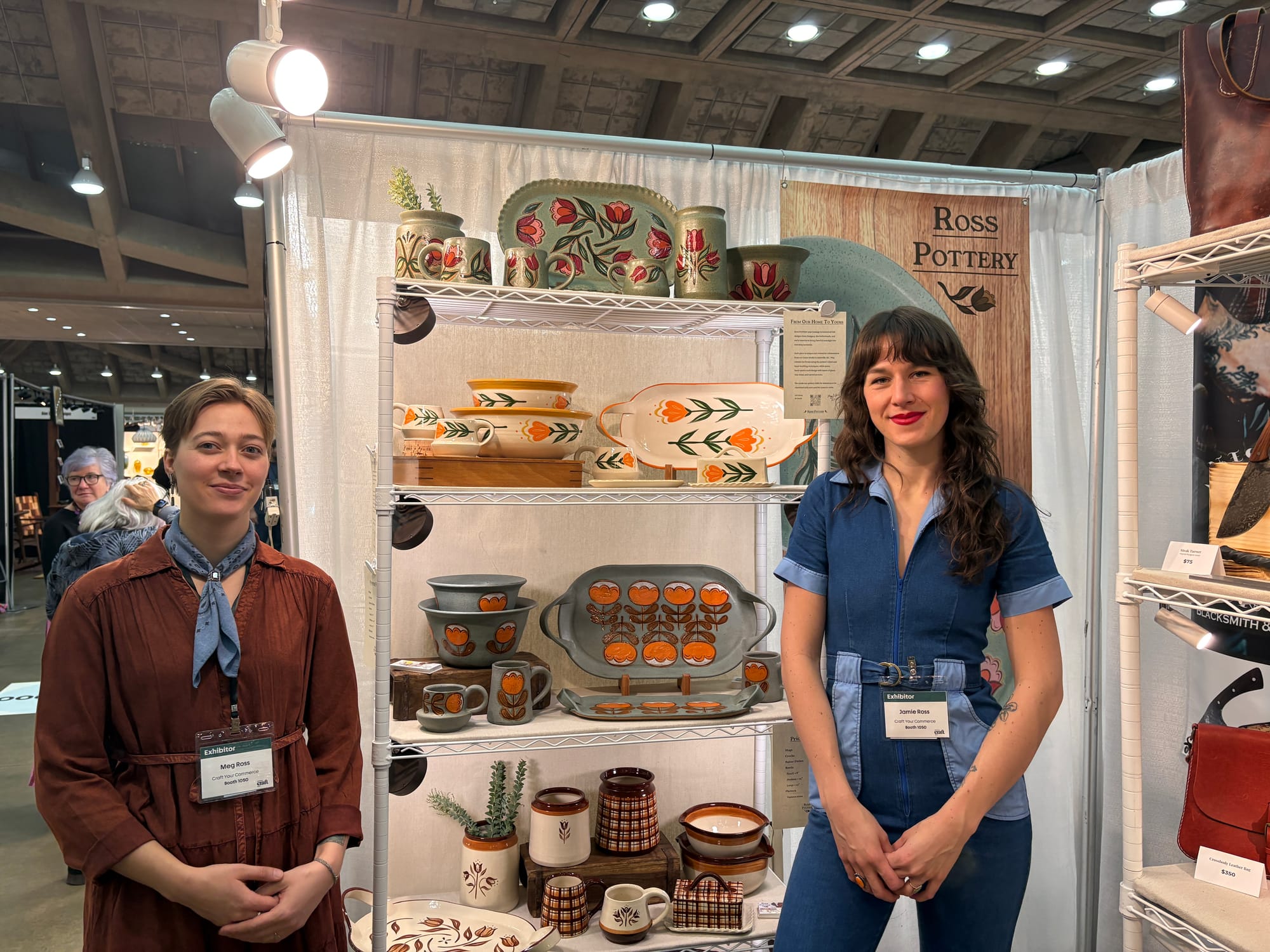 Meg and Jamie Ross’s vintage-inspired pottery filled their booth with nostalgia and warmth. Their gratitude for the community is palpable, as they find fresh inspiration among fellow artists: “A huge thanks to Jamie Karolich [of Craft Your Commerce] and Laura Wood for leading our group and providing the most incredible support, inspiration, and new ways of looking at our craft,” they say. “We are able to showcase our newest collection alongside fellow artists.”
