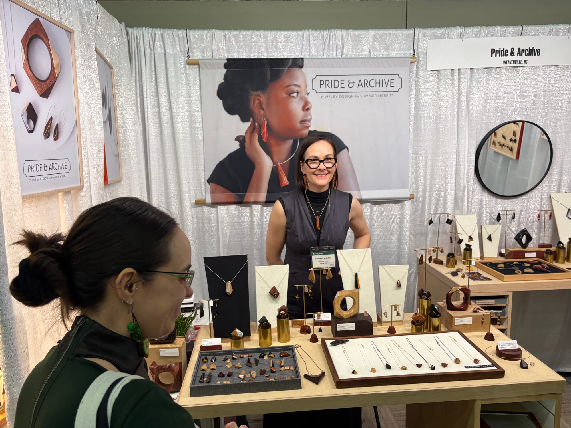 Craft Your Commerce, a program from Mountain BizWorks, equips WNC’s artists and makers with business skills, connections, and resources. At this year’s Craft Made Baltimore, jeweler Laura Wood, featured in ArtsvilleUSA’s Reawakening exhibition, mentored the artists at the Craft Your Commerce booth.