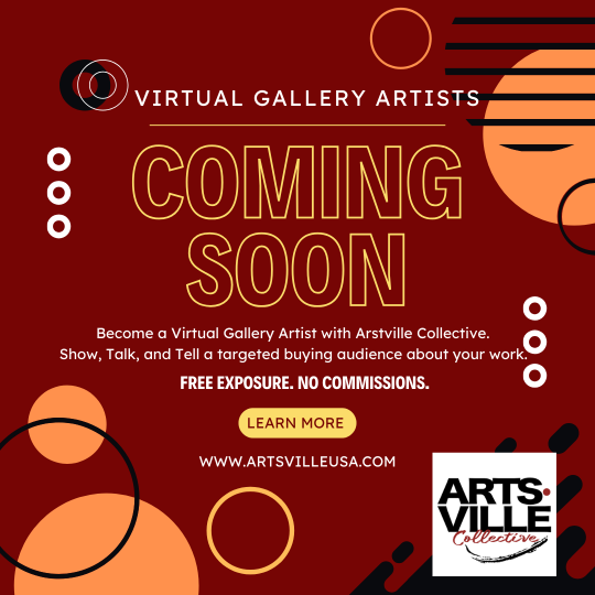 Artsville’s Virtual Gallery of Artists is both a digital exhibition space and a classroom where artists learn to excel through their participation. Each artist brings their unique process, perspective, skills, and inspiration to the collective, making this a truly shared experience. Over the quarter, artists are introduced to an attentive viewing and buying public through Artsville’s monthly newsletter, podcasts, discussion groups and learning programs, giving them opportunities to earn recognition for further exposure in events, pop-up shows and networking groups. Interested in becoming a virtual gallery artist? Apply here!